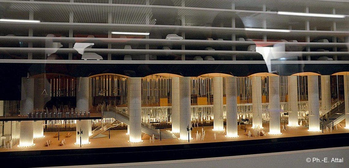 Les premières vues de la future gare du RER E à La Défense (Eole) laissent à peine entrevoir les travaux gigantesques de reprise en sous œuvre et de construction de la gare sans interrompre les activités du CNIT