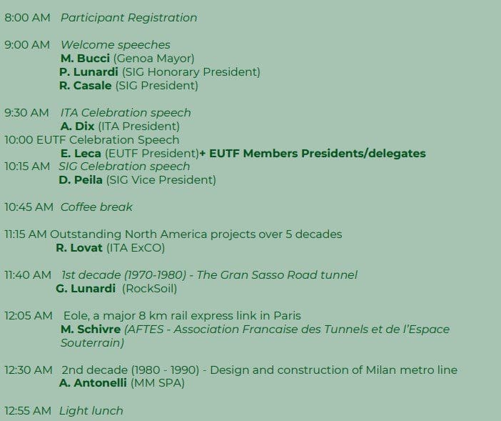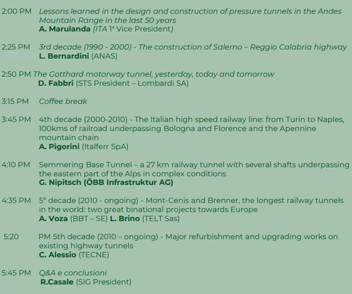 La Conférence accueillera d’illustres conférenciers issus d’institutions académiques prestigieuses et d’entreprises leaders du secteur du monde entier. Cet événement extraordinaire couvrira cinq décennies de projets et d’œuvres souterrains en Italie et à l’étranger. Il convient de souligner que cet événement sera étroitement lié à la cérémonie ITA AWARD, qui se tiendra le 28 novembre 2024.