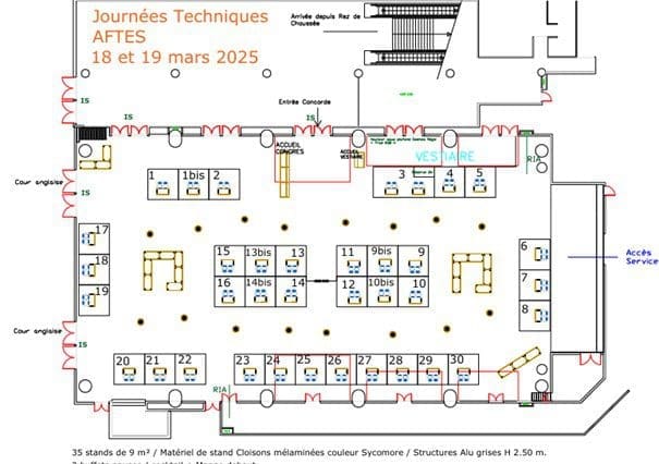 Le nombre d’exposants est limité à 32 et réservé prioritairement aux membres collectifs de l’AFTES ‘Matériel, Equipements, Produits’. Les exposants sont retenus en fonction de la date d’inscription et du versement de l’acompte confirmant leur participation.