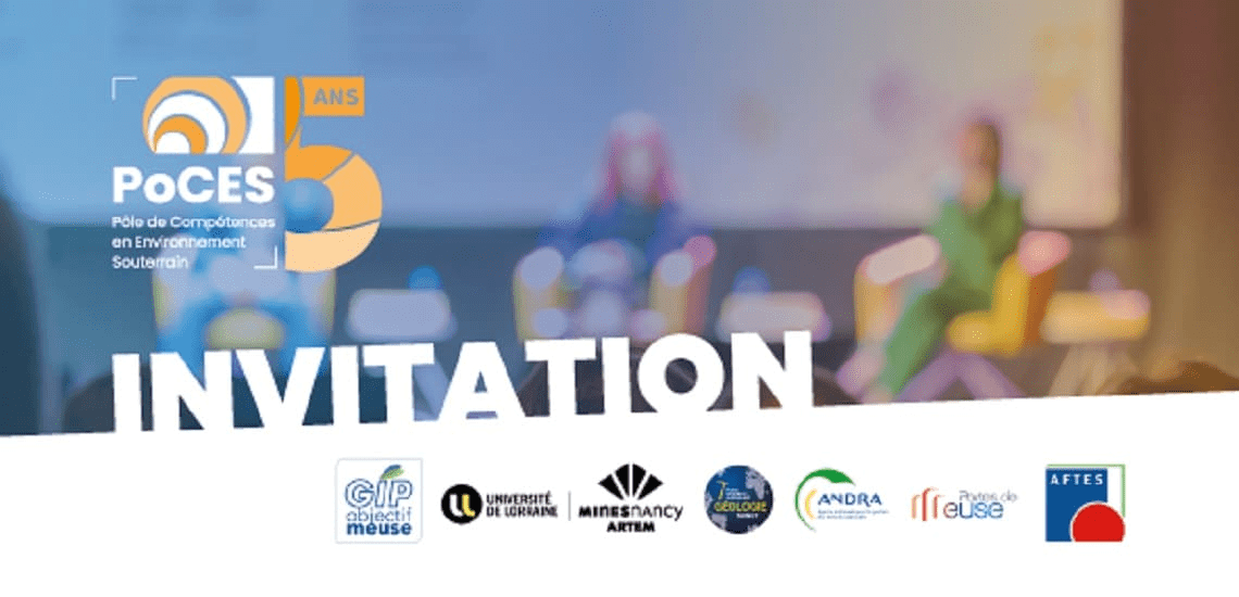 Le PoCES, Pôle de Compétences en Environnement Souterrain & le GIP Objectif Meuse ont l’honneur de vous convier à leur évènement à l’occasion des 5 ans du PoCES qui se tiendra le 6 avril prochain.