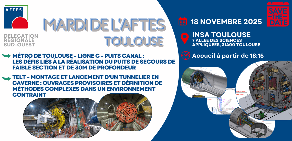 La Délégation Sud-Ouest de l’AFTES vous donne rendez-vous à Toulouse, le mardi 18 novembre 2025, pour le 1er “Mardis de l’AFTES” !