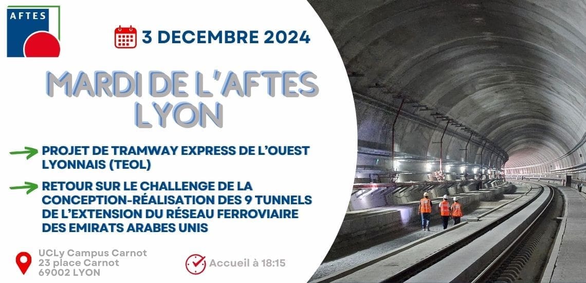 La Délégation Sud-Est organise le prochain mardi de l’AFTES à Lyon le 3 décembre 2024. Cette soirée conférence aura lieu à 18h15 à l’Université Catholique de Lyon, à Lyon – Campus Carnot, Amphithéâtre Rochebillard (3e étage)
