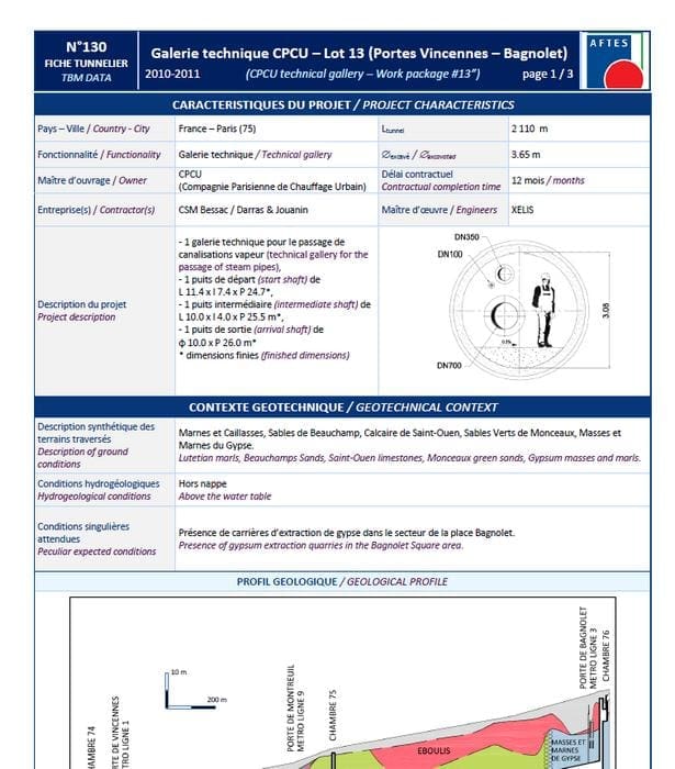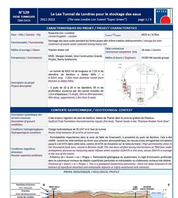AFTES – Groupe de travail n°4 – Fiches Tunneliers – N°1 à N°100