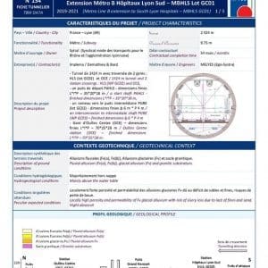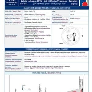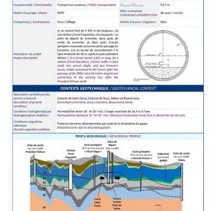 Les fiches tunneliers permettent de comprendre le contexte du projet à travers ses caractéristiques, présentent le modèle géologique du tunnel associé et détaillent la machine utilisée pour le creusement avec ses spécificités techniques et innovations.