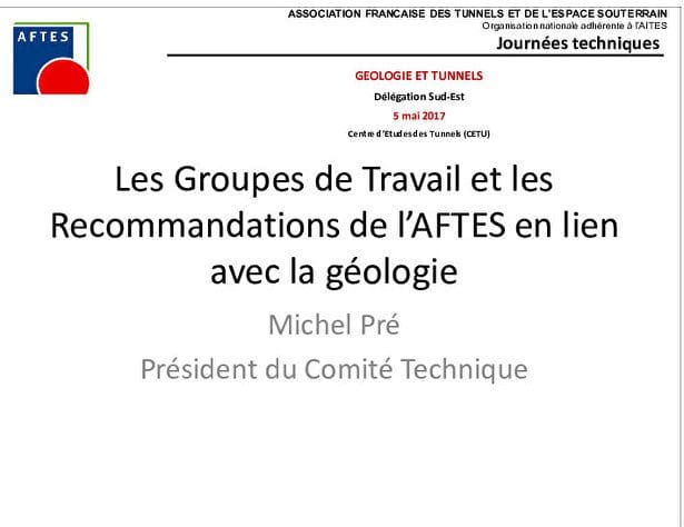 GratuitLes groupes de travail de l’AFTES en lien avec la géologie – Michel Pré