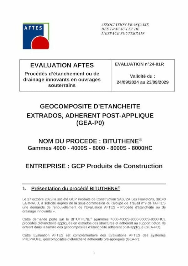 Nom du procédé : BITUTHENE® – Gammes 4000 – 4000S – 8000 – 8000S – 8000HC