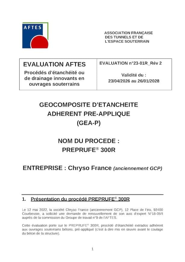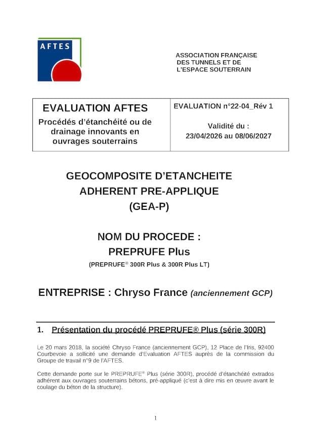 Évaluation AFTES n°22-04 Rév 1 – Validité du : 23/04/2026 au 08/06/2027
