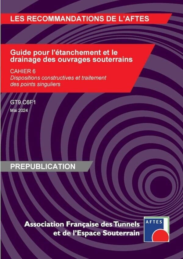 Cet ouvrage est le sixième cahier d’une série de 18 cahiers qui constitueront le « Guide pour l’étanchement et le drainage des ouvrages souterrains », élaborés par le GT9 (GTguide).