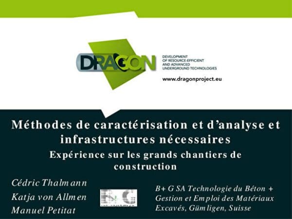 Méthodes de caractérisation et d’analyse et infrastructures nécessaires – Expérience sur les grands chantiers de construction – Cédric Thalmann, Katja von Allmen, Manuel Petitat
