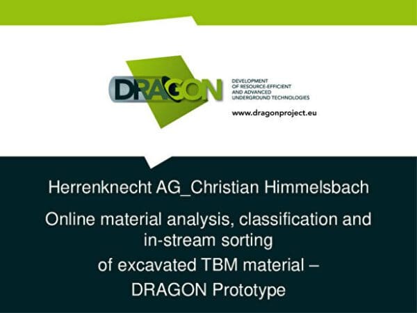 Le projet « DRAGON », pour (Development of Resource-efficient and Advanced underGrOund techNologies), est un projet européen qui se termine en 2015. Son objet est l’étude des possibilités de caractériser en ligne et trier les matériaux excavés à l’arrière des tunneliers afin de pouvoir les utiliser sur site. Toute l’instrumentation et les dispositifs de tri sont positionnés dans le train suiveur de la machine. Un prototype a été mis au point dans le cadre du projet.