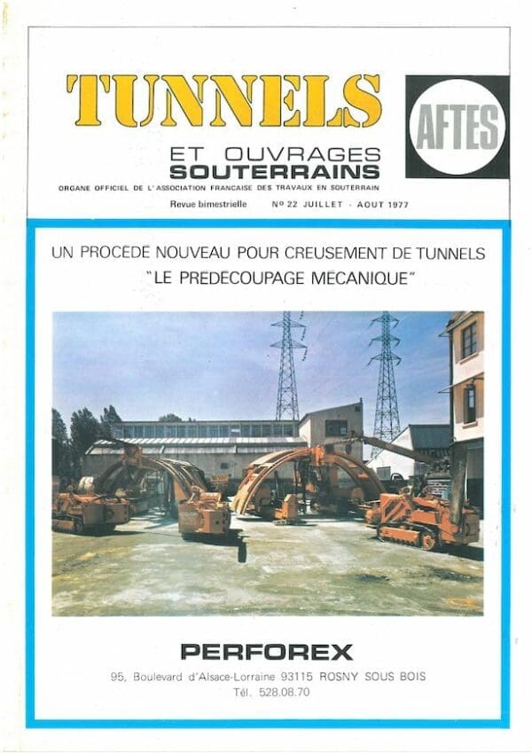 • Le Prédécoupage mécanique – Un procédé nouveau pour le creusement des tunnels par J.F. BOUGARD, P. FRANÇOIS et R. LONGELIN